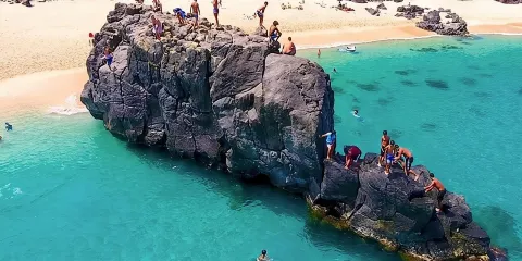 很多人來此都會在它對岸的海灘上遠遠地欣賞它,由於這一帶的海水清澈,水面平靜,因此也適合遊泳和浮潛。但需要注意的是,這裡沒有正式的沖淋處。此外,你還可以看到這片海域有很多人衝浪。