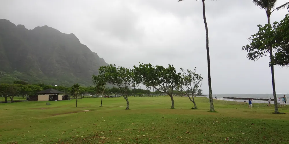 古蘭尼地區公園位於歐胡島東海岸,公園背靠著巍峨的群山,鬱郁蔥蔥的草地依山傍水,相依著清澈蔚然的大海。