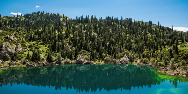 庫車小龍池全長兩百多米,形似一個酒葫蘆。湖心墨綠色水草晃動,像是一條黑色條帶,酷似蛟龍,遂得名。