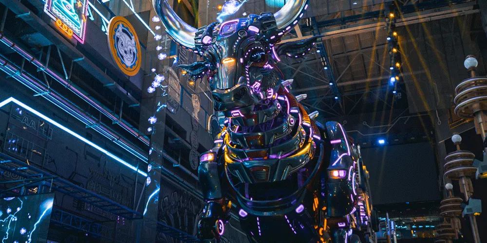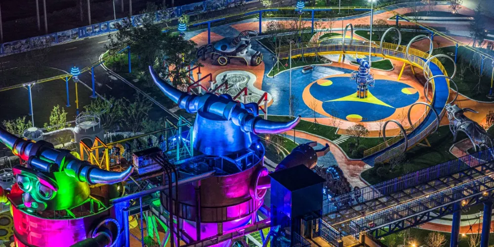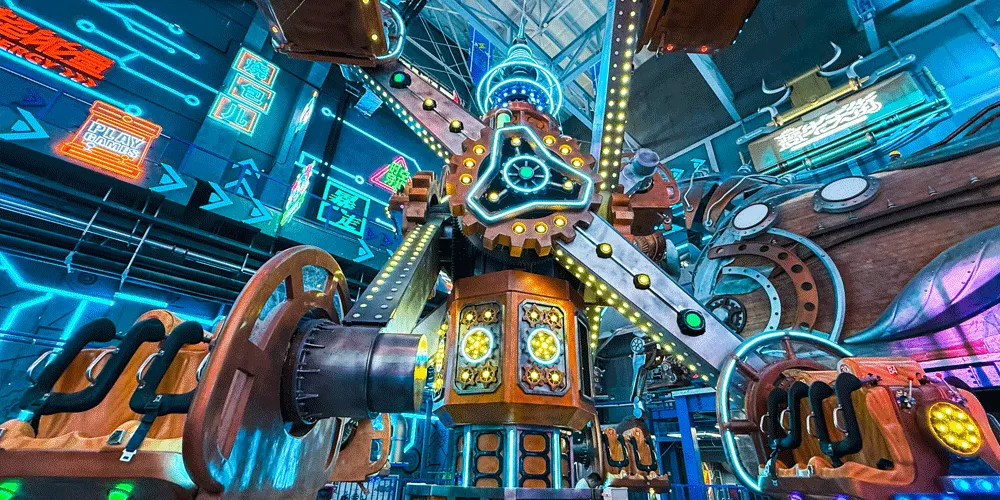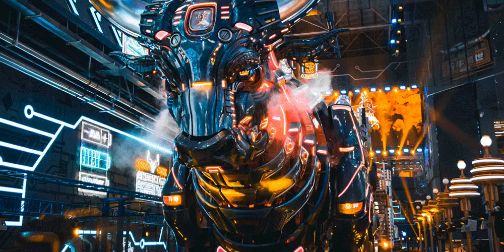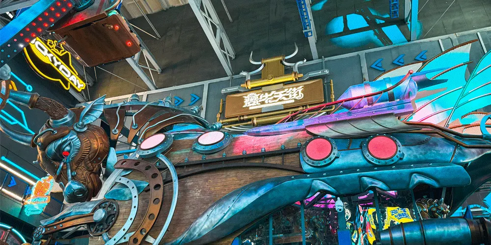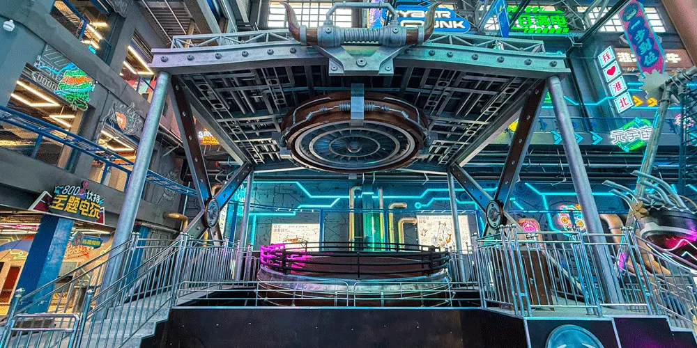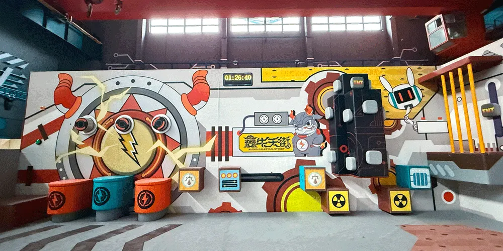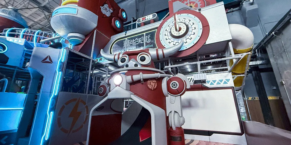 夔牛天街以《山海經》中的神獸夔牛為IP形象,通過機械巨獸的設計,打造淮北以機械巨獸IP為主的特色室內商業街區,集商業、樂園、研學、餐飲為一體。項目建築面積約5萬平方米,包括夔牛天街主街區、夔牛公園、淮北工業博物館三部分。夔牛天街不僅是一個商業街區,更是一個融合了多種業態的綜合文旅目的地。遊客可以在這裡購物、品嚐美食、體驗遊樂設施,還可以參與研學活動,了解淮北的工業文化和歷史變遷。