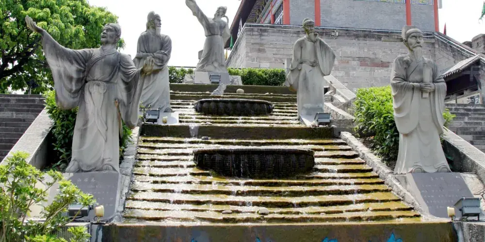 則評價蜀國皇帝劉備的結拜兄弟關羽敗走麥城,死於刀下後,劉備為他報仇,不聽眾臣勸阻,起兵討伐東吳。途中另一個結拜兄弟、伐吳先鋒——張飛喪身叛將範疆、張達手中,劉備憤而不謀,催兵猛進。章武二年夏六月,被東吳大將陸遜用計火燒七百里軍營,在敗於彝陵猇亭之地,因而退守到白帝城中。三國久未統一,兩弟先後喪命,大軍新遭重創,國事私仇使劉備憂憤成疾,眼看朝不保夕,乃招丞相諸葛亮星夜趕至。在永安宮中,劉備把兒子劉禪(阿斗)委託於諸葛亮。然後便一命歸天了。從此,白帝城就因這段膾炙人口的故事而更加聞名於世了。現在的託孤堂位於白帝廟前殿。為了再現1700多年前永安宮劉備託孤的悲壯歷史,白帝城博物館特邀雕塑家趙樹同先生,於1984年創作了一組劉備託孤大型彩塑。21尊高2米多的蜀國君臣彩塑,造型生動,形態各異,個性鮮明,具有強烈的藝術感染力。