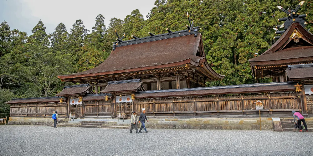 熊野本宮大社屬於和歌山縣東南部的吉野熊野國立公園,與熊野速玉大社、熊野那智大社一起並列為熊野三山,它是全國3000多熊野神社的總神社。將烏鴉作為神的侍者的大神社,起初建造在熊野川、音無川、巖田川匯合處的中洲大齋原上,19世紀末被大洪水沖走後,才改建在現在的位置上。作為正門的神門、參拜殿、祭祀神的神殿等在古色蒼茫中讓人感到沉着安詳,好像在對人解釋為什麼人們對熊野本宮大社如此篤信。自14世紀起,在當地老百姓的生活中就形成了參拜熊野的習慣,當時有“螞蟻參拜熊野”的説法,由此可見參拜人數之多。綠茵叢中鋪有青苔石階的熊野古道邊上有描述參拜歷史的古蹟和石碑,許多人喜歡將熊野古道作為散步線路。在熊野本宮一帶有在河邊修建的温泉池、享受露天温泉的川湯温泉,以及秋天紅葉迷人、露天温泉規模數一數二的湯之峯温泉等。