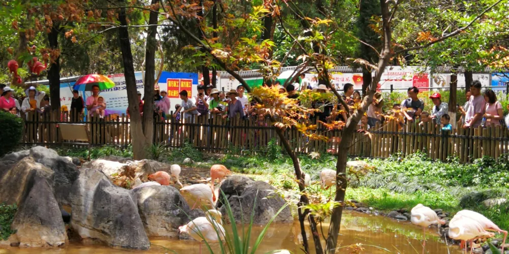昆明動物園又稱圓通山動物園,圓通山上樹木茂密,四季都有花開,春季的櫻花尤其出名,環境優美。動物展區內,現在有140多種共近千隻動物,雲南本地的大象、野牛、犀鳥、小熊貓等都很齊全,還有金絲猴、東北虎、澳洲袋鼠、火雞、美洲獅等各國動物。另外,園內還有很多小型的娛樂設施,邊玩邊逛,十分有趣。