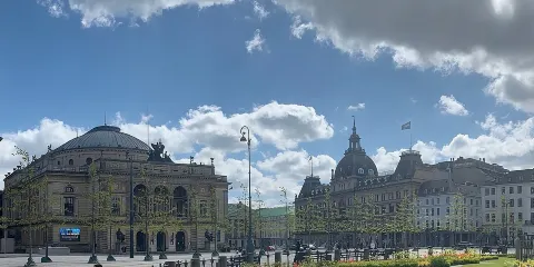 廣場內座落著巴洛克建築風格的皇家劇院、皇家藝術學院等著名建築。皇家劇院於1870年左右建成,著名的丹麥皇家芭蕾舞團就在這裡演出。而皇家藝術學院建築的前身,是克裡斯欽五世的王后居住過的夏洛特堡宮。此外,廣場中有著一座巴黎風格的建築物,這是一家已有100多年歷史的大商場,即著名的瑪格森商場。