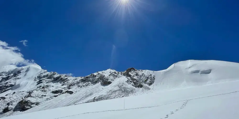 廓瓊崗日冰川景區位於拉薩市當雄縣羊八井鎮往西格達鄉境內,毗鄰S304省道,距羊八井地熱溫泉僅50公裡,往返拉薩僅280公裡,是目前距離拉薩最近的冰川景區,也是目前世界上車輛可以抵達的海拔最高景區,觀景台海拔為5500米,冰川體驗區拔為5400米。