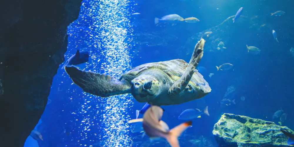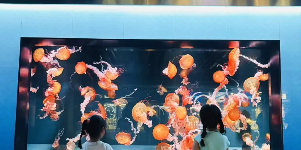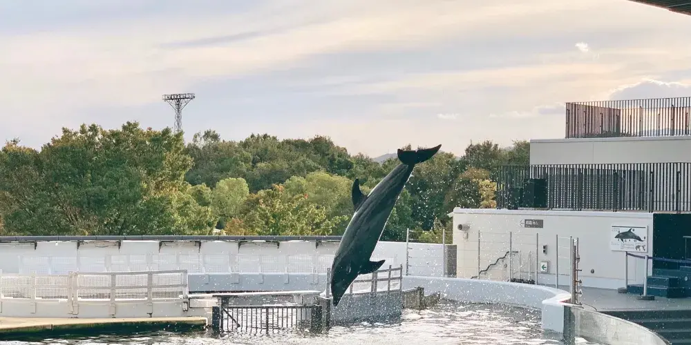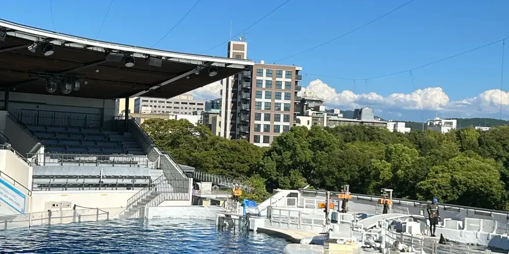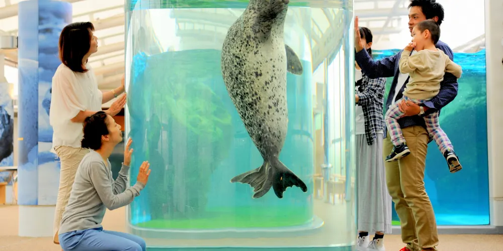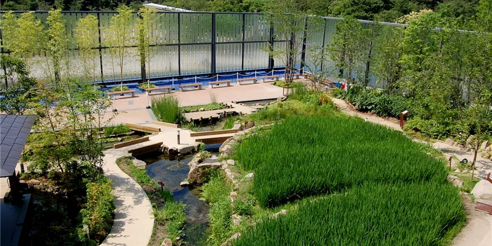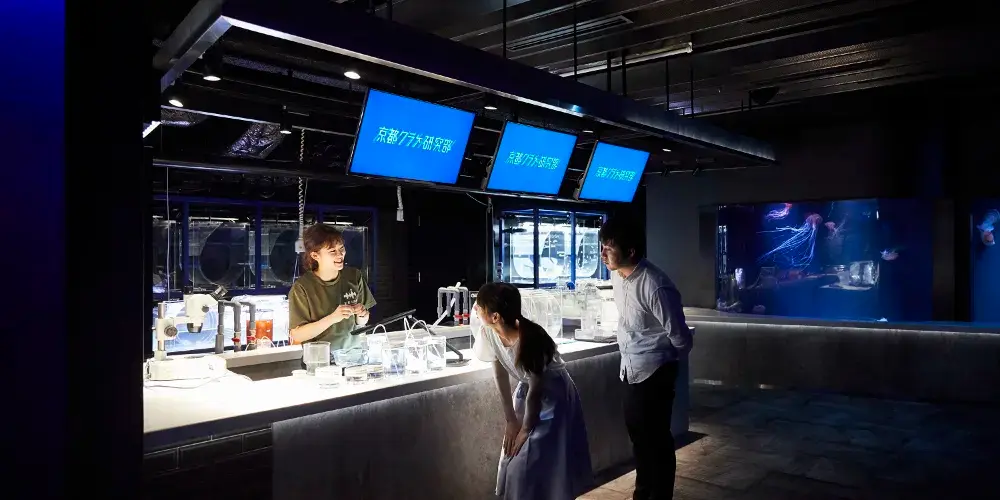在這片土地上,一家水族館誕生了。降落在丹波群山和蘆生原生林間的雨水變成了清泉,變成了小溪,很快又匯聚成大河,最終注入大海。從源頭一直流入大海的一脈相連、以及多種生物共生的生態體系,都在水族館中再現。另外,京都水族館並不僅僅是展示。這裡還定期舉辦在遊玩中學習的“親密接觸”、以及由飼養員進行的講解等活動。水族館的目標是建成一家綜合的寓教於樂型設施,使居住在京都的孩子們能夠親近水以及在水中棲息的各類生物。同時,還通過太陽能發電降低消費電力,為京都稀有物種的繁殖提供支援等。作為環境示範城市的代表設施,致力於自然保護。