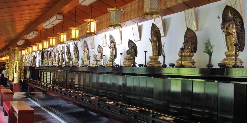 勝尾寺,原名為「勝王寺」,後因為日語中「王」與「尾」是諧音,這個稱呼逐漸流行起來。很多人來這裡求「勝利」之運。同時這裡也是觀賞楓葉的理想場所。這座寺院擁有1300年的歷史,歷代都有權貴前來參拜,包括源氏和足利氏。即使在今天,來自世界各地的人們也來此祈求健康、事業、考試、體育和愛情等各方面的成功。供品架上擺放的眾多「勝達摩」(勝利達摩)是信徒們在實現目標後回來表達感激之情時放置的。勝尾寺的「勝」(勝)概念不是打敗別人,而是戰勝自己。通過對勝達摩許願,直面內心,克服個人弱點,通過自我提升和堅持不懈,願望就會實現。
