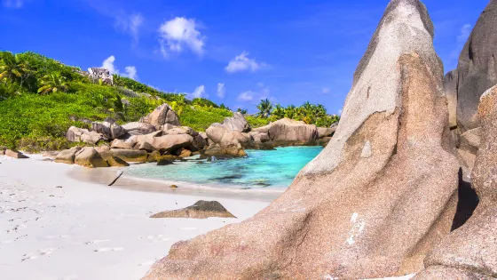 4.9 分51 則評價拉迪格島位於馬埃島的東北部,普拉蘭島東部,距離普拉蘭島非常近,這是一座如熱帶天堂般的小島。你可以前往小島西北部的拉帕斯小鎮,這是一個寧靜慵懶的小鎮。島上有很多自行車出租,你可以租自行車在小鎮上騎騎車,或是和當地人一起週六聚集在餐廳喝酒跳舞。你也可以前往小島西部的聯合農場,看古老的椰子油提取,還可以向西走到海邊欣賞世界美麗沙灘之一的德阿讓海灘,海灘因影片《艾曼紐》而聞名,更引來無數大片在此拍攝。當然,你更可以去弗夫保護區,欣賞即將瀕臨的黑綬帶鳥。登上小島制高點,來一場徒步。