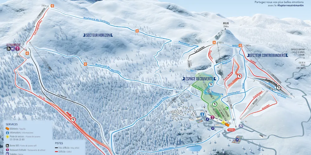 雪場擁有分級雪道,其中大部分為藍道與綠道,特別適合家庭滑雪與初級愛好者。現代化纜車連接海拔落差700公尺的滑雪區域,全景纜車可將阿斯佩山谷的雲海奇觀盡收眼底。雪場特別規劃了雪鞋健行路線與狗拉雪橇體驗區。夏季轉型為高山運動基地,開放滑翔傘起飛場及比利牛斯岩羚羊觀察點。