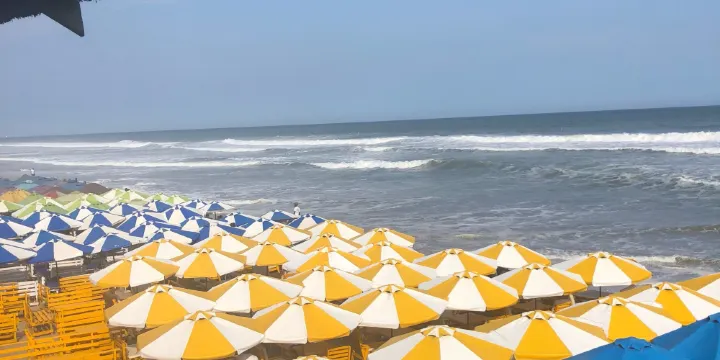 Labadi Pleasure Beach 是加納首都的濱海休閒地標,以3公里長的金黃細沙與碧波蕩漾的幾內亞灣海水構成天然畫布。沙灘排球網常年架設於細軟沙地,獨木舟與滑水設備租借點沿著潮線分佈,為動靜皆宜的遊客提供多元選擇。近岸淺水區平緩無礁,適合家庭親子嬉水,專業衝浪區則設有安全浮標隔離帶。