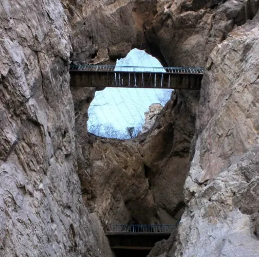 天梯山景區位於邢台市西郊,有一條陡峭的石階沿山嚮上建立從而得名天梯山,步道間有懸空橋、吊橋驚險刺激,兩旁的山體間有多個天然山洞,山洞裡有神像、石刻等歷史古蹟可以參觀。在天梯山腳下還有一個地下水道金水洞,可以乘船進入洞內觀賞鐘乳石的美景。