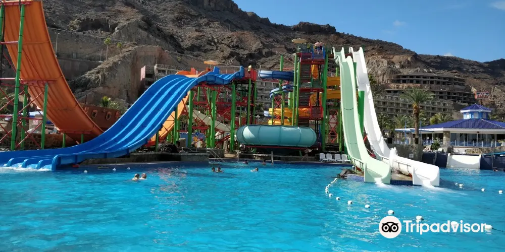 Lago Taurito Water Park是西班牙加那利群島莫甘地區的一個大型水上樂園,坐落於熱帶花園環境中並享有海景。樂園以人工湖為中心,設有多種水滑梯,包括高速滑道、家庭滑道和刺激的封閉式滑道。擁有造浪池模擬海浪,懶人河可供放鬆漂流,以及專門的兒童戲水區配有小型滑梯和噴水設施。此外,樂園提供日光浴躺椅、餐飲服務和迷你高爾夫等休閒活動,是一個適合全家遊玩的水上娛樂綜合體。
