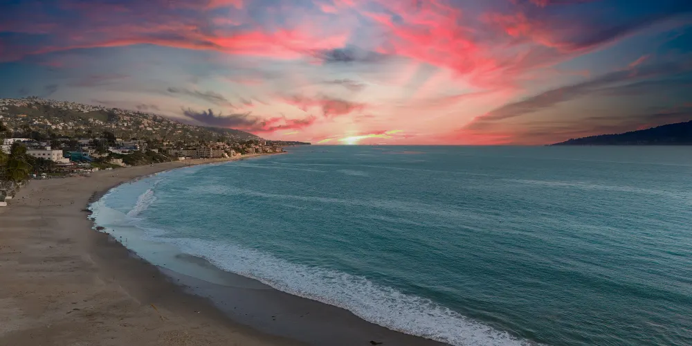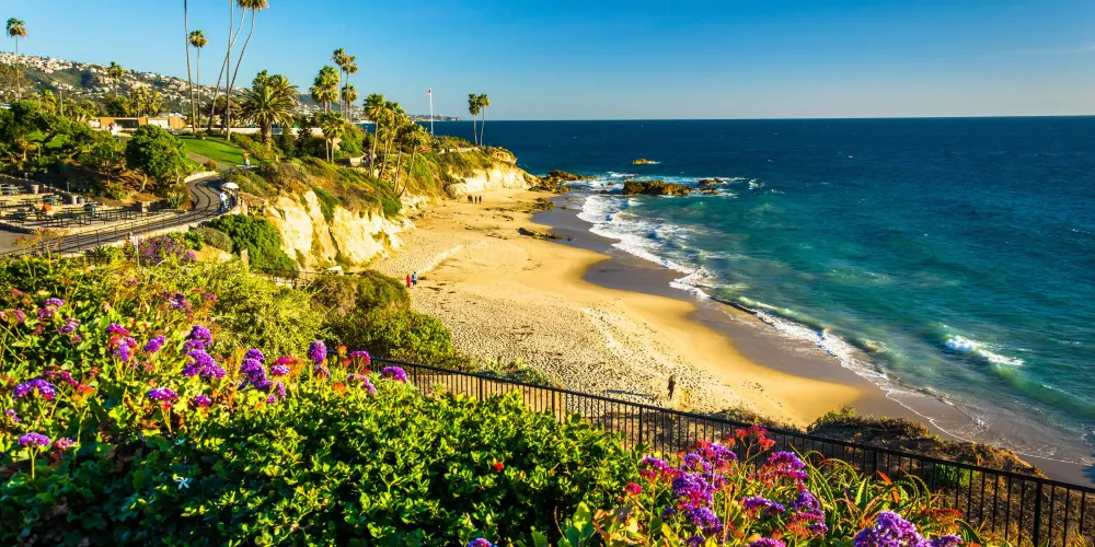 拉古納海灘位於美國加州的橙縣,以其壯麗的海岸線和藝術氛圍聞名。原來是私人海灘,後來成為好萊塢明星的私藏地,現在則成為藝術家聚集的度假勝地,每年都會舉辦大大小小各種類型的藝術節。這裡的海灘以細膩的沙灘和清澈的海水吸引遊客,是游泳、衝浪和日光浴的理想場所。沿海的懸崖和潮汐池為徒步旅行者和自然愛好者提供了探索的機會。