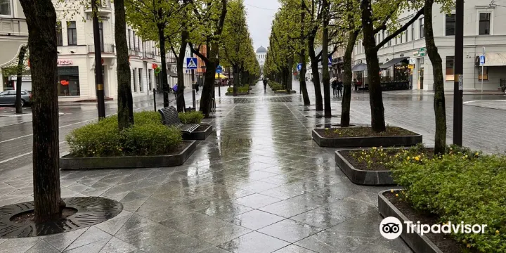 自由大道是考納斯知名的一條核心街道,位於老城區,改造得更像歐洲的林蔭大道,一條沒有車經過的林蔭大道,兩旁是各種商店。