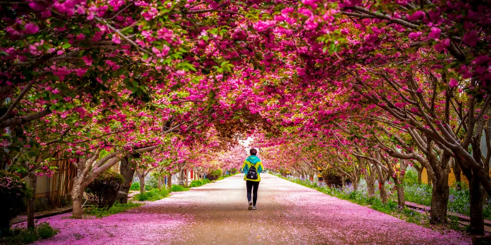 萊陽濯村櫻花小鎮種植櫻花已有近二十年的歷史。每當櫻花盛放,整個村子就陷入了一片柔軟浪漫的花海,櫻花隨著風的節奏律動著,像雪花一樣洋洋灑灑飄落下來。即使只是簡單地漫步其中,也能感受到那種舒適放鬆和悠然愜意。