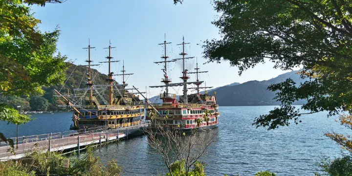 蘆之湖遊船是當地有名的遊覽項目。蘆之湖是箱根旅遊的核心地區,位於箱根町西方,駒形岳的南邊山腳。湖面積690公頃,湖深723公尺,環湖長度為17.5公里。它是在四千多年前,因火山活動而形成的火山湖,經湖水沖刷的河谷。蘆之湖背倚著富士山。湖山相映,不同的季節有不同的景致。環湖步道遍植青松翠杉,景致十分怡人,湖中有很多黑鱸魚和鱒魚,許多日本人經常在此泛舟垂釣和游泳。五月時節的蘆之湖滿山新綠,碧水盈盈。從蘆之湖的南岸向北眺望,可以看到富士山。蘆之湖東岸的山和海盜遊船,海盜遊船是蘆之湖上的一景。