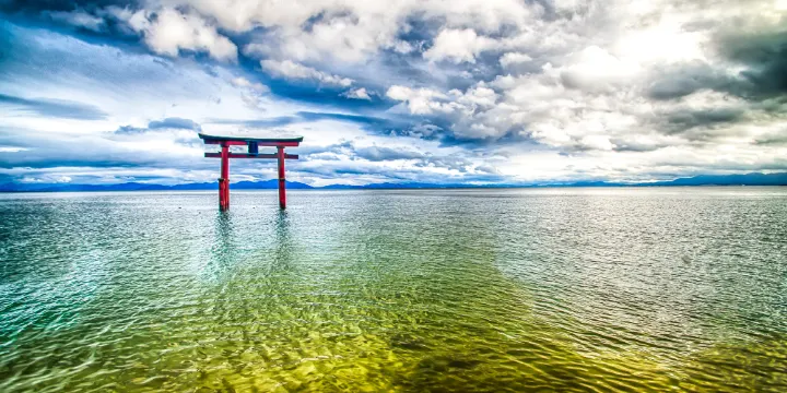 琵琶湖是日本境內較大的內陸湖,面積達674平方公裡,相當於滋賀縣總面積的六分之一。以該湖為中心,由余吳湖、伊吹山、比良山、比睿山等共同組成琵琶湖國定公園,其中“近江八景”類似於中國洞庭湖的“瀟湘八景”。