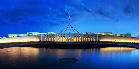 它位於澳大利亞的首都堪培拉的中心,是世界上最著名的建築之一。它以其宏偉的建築結構著稱,並以大量使用磚石和優質木材及收藏包括世界上最大的掛毯之一在內的藝術精品為特色。