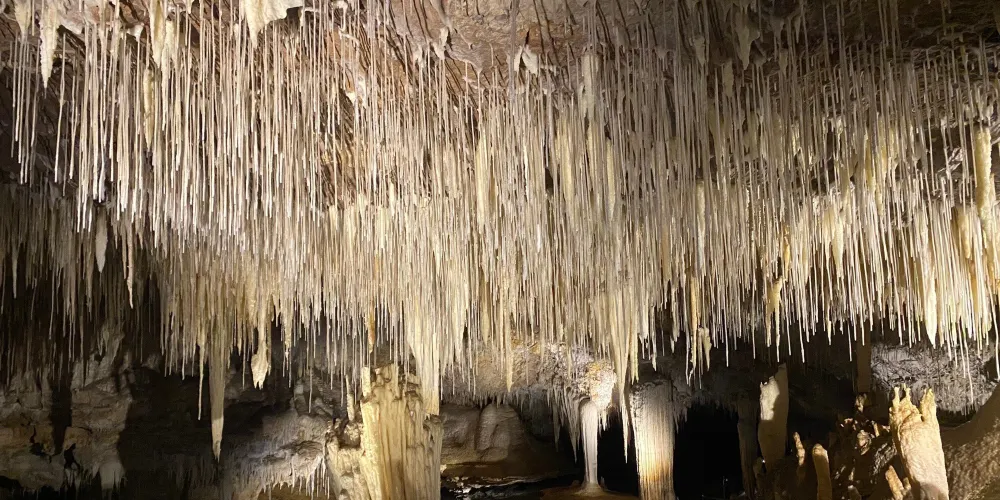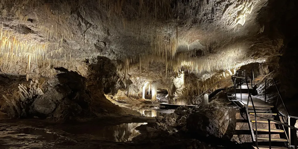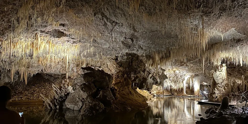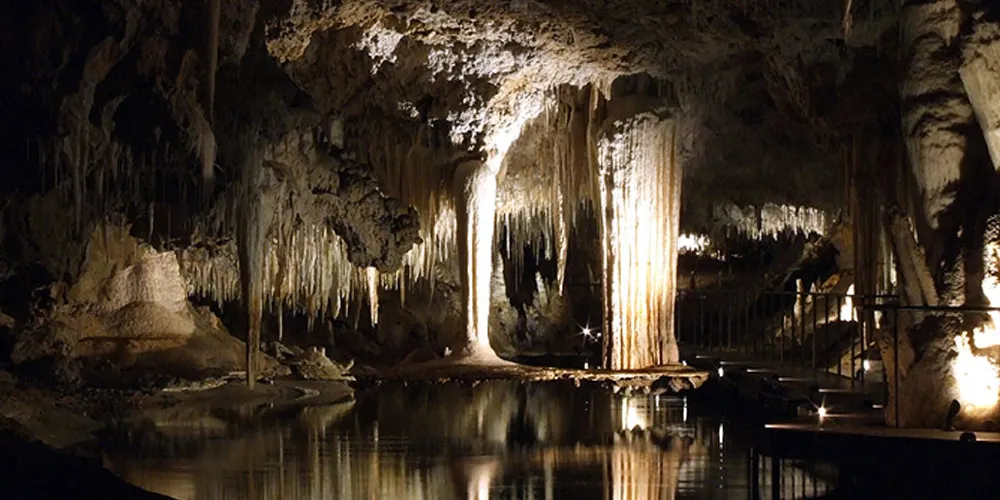 湖洞(Lake Cave)是保留很完整的洞穴,這裡開發給遊人的空間很小,基本走不到幾十米就到頭了,途中有一片滿是參天大樹的原始森林,路旁還有一塊專門供遊人停車的空地。經過長途跋涉,在這個天然氧吧呼吸一下純淨的空氣,真是一種享受。