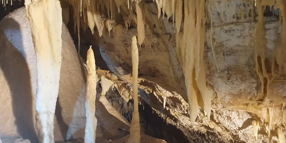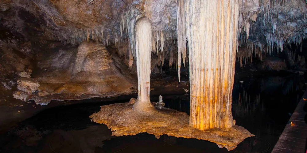 則評價猛獁洞穴是澳洲西部僅有的幾個擁有古生物化石的洞穴,來到這裡彷佛是乘坐時光飛船穿越回了億萬年,這裡由大量的大型古生物化石堆疊而成。當遊客穿過浮橋,進入洞穴,您會驚歎到這裡驚人的化石數量,超過10,000多枚化石留存在這裡,這些化石已被證明是在46000年前便已滅絕的澳洲巨型動物遺體。洞中甚至還包含了一顆嵌入洞壁之內5萬年前大面頰獸的下顎骨。若您在冬天到訪這裡,還將有幸看到一條溪流,穿過被由天然單寧所染成紅色的奇妙洞穴。在遊客離開洞穴途經Marri小徑時,還能夠觀賞到許多的植物展示,還有眾多歌聲優美的鳥兒匯聚在這裡。