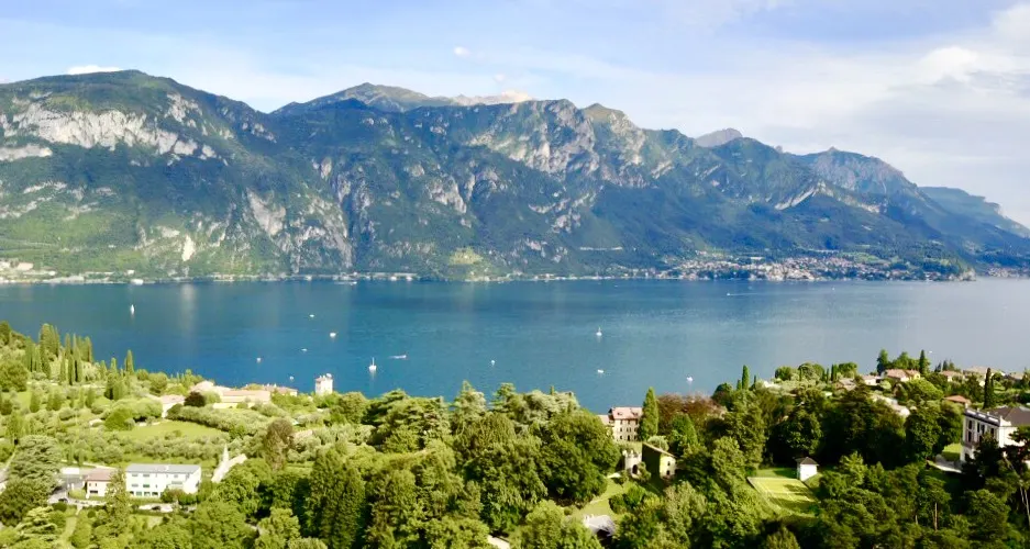 Bellagio作為世界上大受歡迎的旅遊勝地之一,位於科莫湖中央的岬角尖上,提供前往湖兩個支流方向的渡輪服務,遊客可以在Bellagio參觀翠綠的Serbelloni別墅公園和Melzi別墅。岬角曾經被繼續人工伸向湖里,將湖水分割成兩個較低水位的支流,這是亞歷山德羅·塞貝洛尼的心血結晶,他是當時倫巴第高貴富有的家族首領之一。