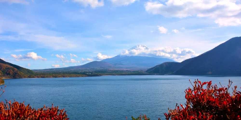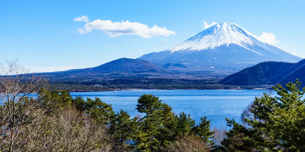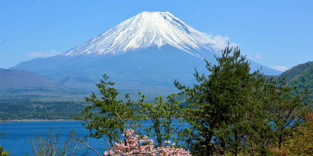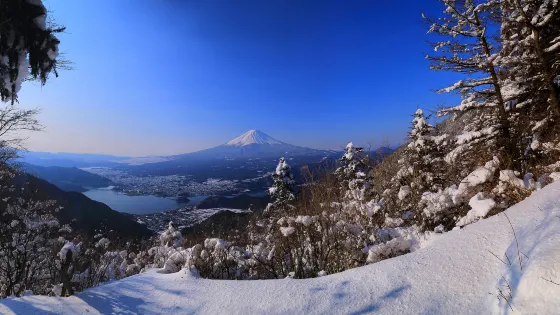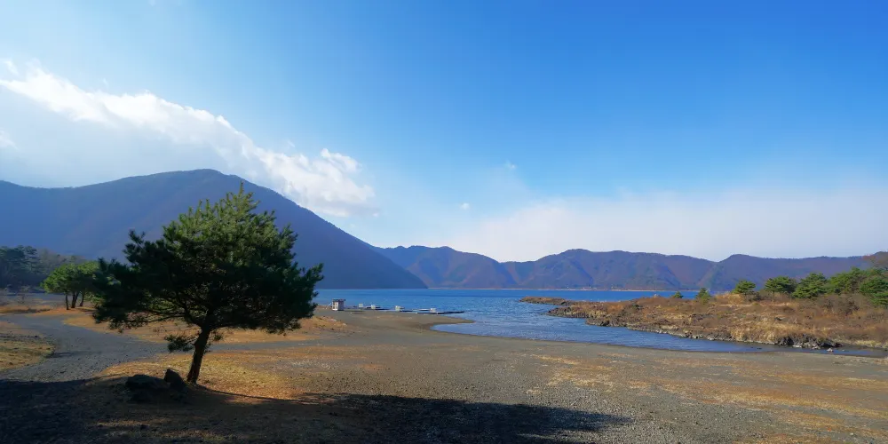 精進湖呈馬蹄形,是富士五湖中面積最小的湖。在它與屹立於東南方的富士山之間沒有任何建築物,因此能眺望到令人震撼的富士山。還可從附近的全景台上,一覽無餘地觀賞到樹海和大室山等壯觀景象。