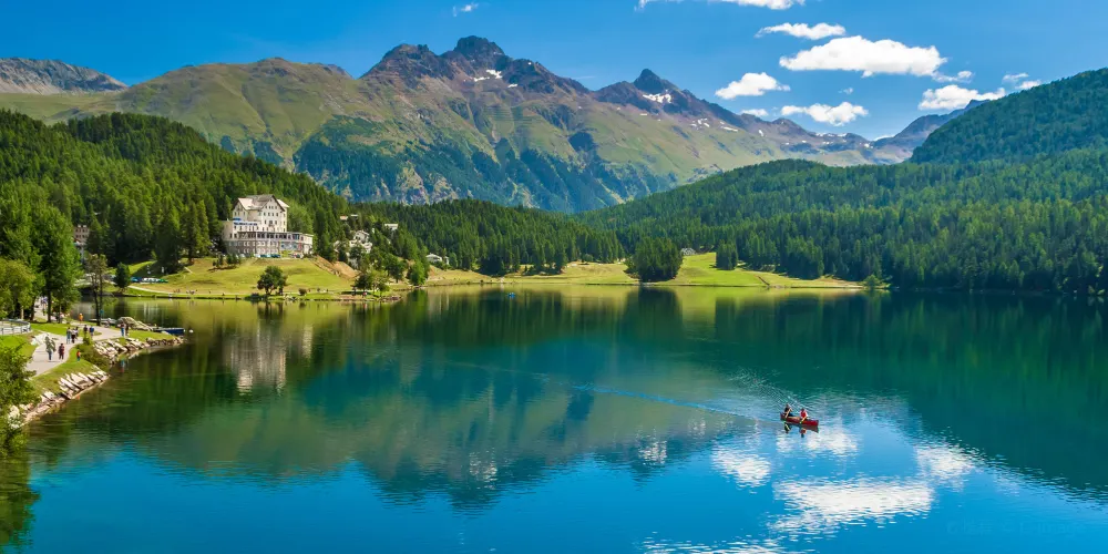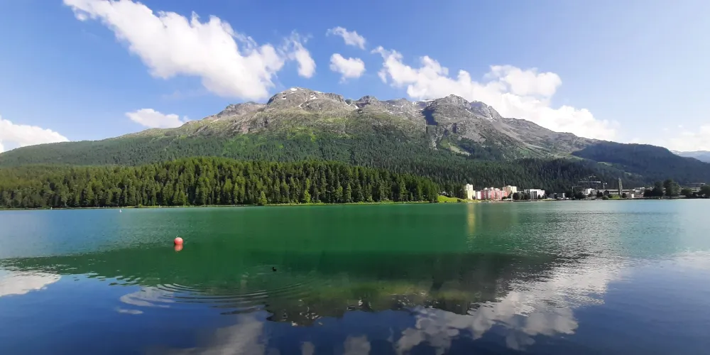 聖莫里茲湖雖不大,卻是幾項國際賽事的舉辦地,這得益於這裡獨特的馬洛亞(Maloja)現象:每逢夏季來臨,巨大的馬洛亞雲層沿著山谷搖晃而來,風向的偏移,掃去了午間的悶熱,給人們帶來陣陣涼爽,同時也恰好能使潮水的方向及力道適合衝浪與帆船運動。