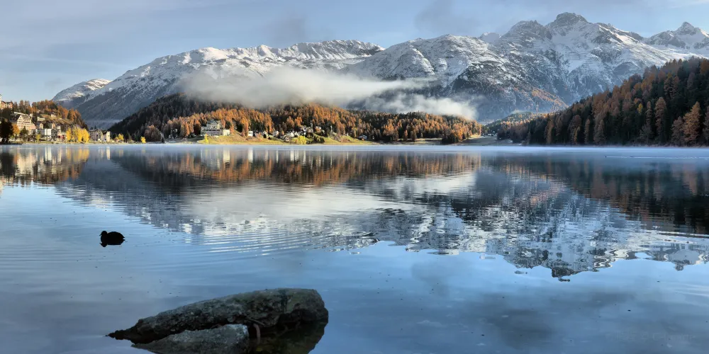 聖莫里茲湖是恩嘎丁山谷中較為重要的湖泊之一,由於其東側和南側擁有的林地,也成了小鎮較為迷人的觀景點。湖水呈現湛藍色,是聖莫里茲的象徵,隨著四季更迭,聖莫里茲湖呈現出不同的迷人風景。