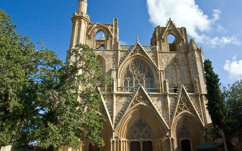 聖.尼古拉斯教堂是法國盛期哥特式建築的代表作之一,公元一三二六年完工。她像一座藝術聖殿矗立在海濱之城的中心,高聳的塔樓穿透棕櫚樹梢,沖入藍天,為古城增添了一道神聖神祕的光環。大教堂建有三個超豪華廟堂和三個具有很高藝術價值的樓前立面,尖頂大門上精緻的玻璃玫瑰圖案十分引人注目。雖然兩個立面塔樓並不盡善盡美,法馬古斯塔聖尼古拉斯大教堂仍被認為是塞浦路斯較美的哥特式建築。大教堂內的濕壁畫、基督教雕塑裝飾和彩色鑲嵌玻璃等藝術瑰寶也遭到浩劫毀壞,造成了無可彌撲的損失。如今明亮的大殿空空如也,衹有擎天的立柱和加肋十字拱頂在述説著以往的輝煌。