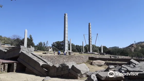 距離市中心 距離市中心3公里石柱羣遺址內的雕刻石柱,是阿克蘇姆非常出名的歷史遺跡。石柱羣遺址中的方尖碑,每個面上都有4個方龕,方龕上雕有對稱的建築圖案,這些圖案描繪了古代帝王宮殿的縮影。石柱羣遺址內的雕刻石柱,本來有7支,較高的兩支已經倒下了,分別為33和24米,後者曾經被意大利奪走,近年重新回到這裏。