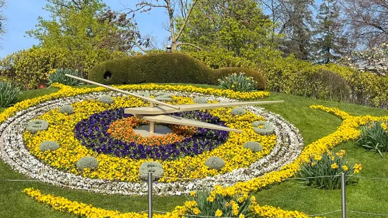 則評價花鐘坐落在日內瓦湖畔、英國花園的西邊。鮮花與鐘錶的結合使得它彰顯出了日內瓦「鐘錶之都」的美名,也因此成為了日內瓦的一個象徵。雖然在瑞士的其他城市也能見到花鐘的身影,但是日內瓦的花鐘才是真正的花鐘始祖。花鐘直徑5米,鐘錶的機械結構是設置在地下的,地面上的鐘面和代表12小時的阿拉伯數字則由鮮嫩翠綠的芳草或者鮮花覆蓋,並隨著季節變化新的圖案。參觀完花鐘,可沿著日內瓦湖參觀湖中的大噴泉。