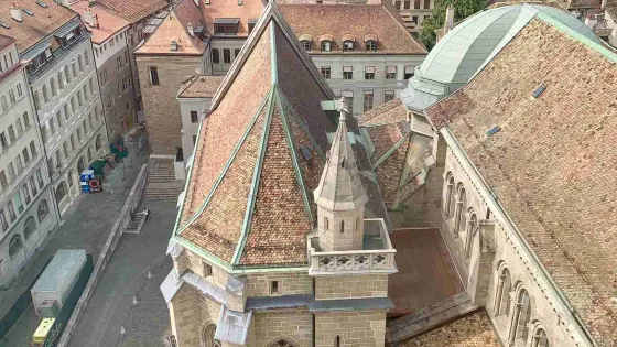 聖皮埃爾大教堂有兩座塔樓,沿著旋轉樓梯登上塔頂即可享受360°的日內瓦美景,日內瓦老城、日內瓦湖的景緻都盡收眼底。兩座塔樓之間是互通的,之間由走廊連接。