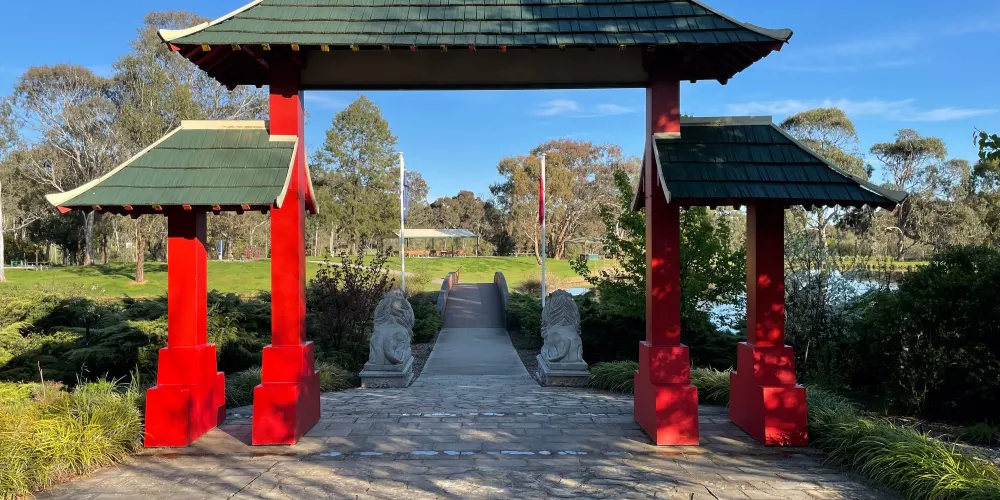 對於華人紀念園項目的開發是對19世紀60年代來到楊市定居的華人羣體作出貢獻的認可,也是對華人一直以來對澳大利亞作出貢獻的認可。1992年楊市的RotaryClub承接了唐人堤的修繕工程,曾設了一些基礎設施,並且在唐人堤旁邊修建了一座中國公園。很多區域企業為工程提供物資和服務協助。首先Rotary於1992年正式開始實施項目計劃,修建了新的入口和停車場。傳統的園林入口處的門牌坊來自悉尼Taronga公園,是1988年動物園原熊貓展區的一部分。在中間區域清理淤泥建成一個人工湖,中國花園成形。然後階段初步建成華人紀念園,花園中的假山石材是通過一位Harden採石工人從Boorowa附近的採石場那裡獲得的。項目的大部分勞動工作是由志願者和YouthSchemes完成的。該項目獲得了7.5萬澳幣聯邦撥款以及1.5萬澳幣櫻桃節撥款,同時還有悉尼華人社區的集資。