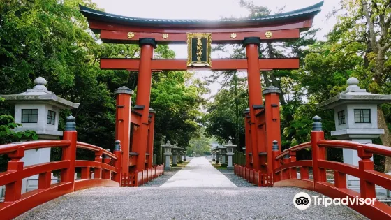 氣比神宮是福井縣較古老的神社,神社建造獨特,內部以硃紅色為主要色調,結合了部分中國古代宮殿的風格,神祕而又莊嚴。神社周圍滿是鬱鬱葱葱的樹木和開的爛漫的梅花。