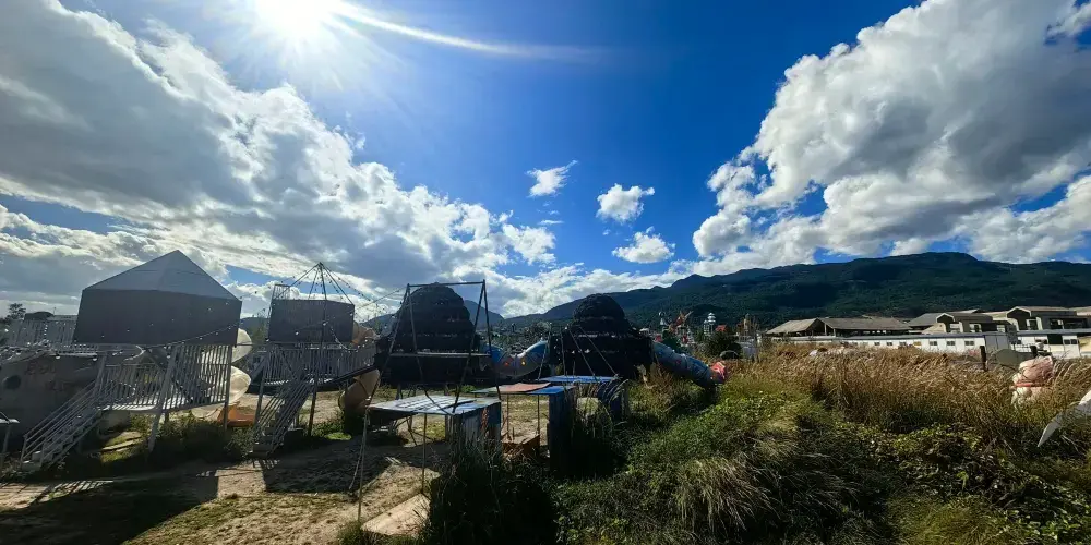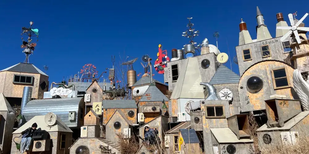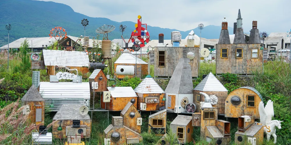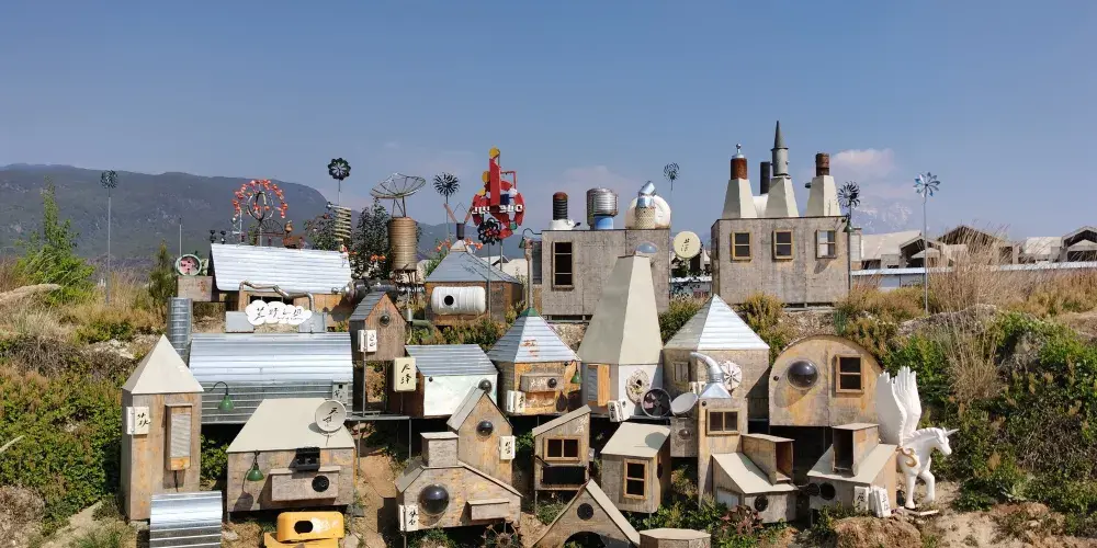 荒野之國位於麗江市古城區,是民謠歌手利用人們丟棄的廢舊輪胎、電扇葉子、鐵皮桶等堆積而成,很有創意又非常環保。荒野之國內有武士荒草集、遊牧流浪者、漏雨美術館、樹屋咖啡館、雲竹餐廳等幾十座風格迥異的小房子。