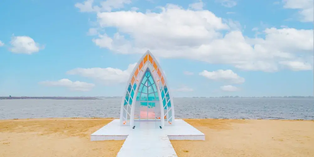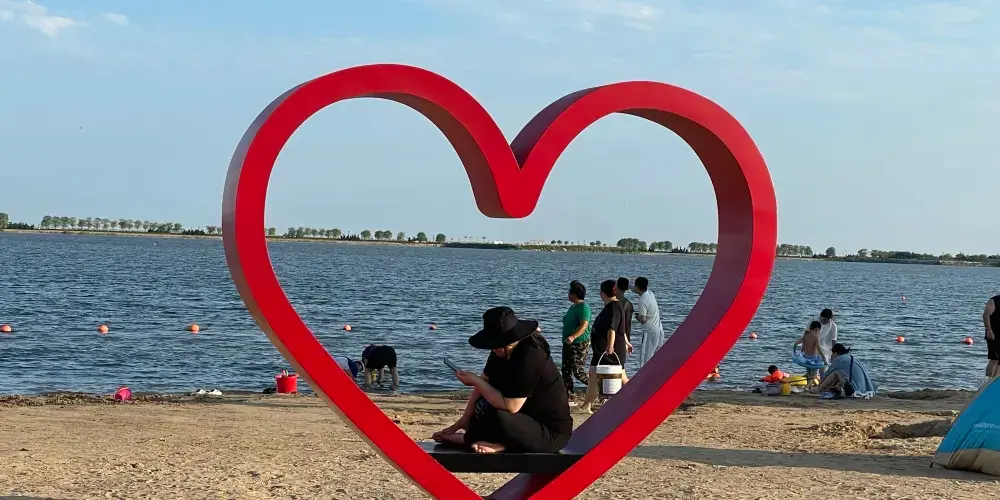 攬月灣景區,坐落於美麗的「渤海明珠」曹妃甸新城南部濱海海岸帶,距離北京240km,離天津100km,是離北京較近的海。攬月灣景區總規劃面積14350畝,海域面積7759畝,沙灘面積223畝,岸線長達12.8km,整個景區形似一彎新月,懸掛於美麗的渤海灣,日出東方、陽西下、海天一色,呈“海上生明月”之景,展“上九天攬月”之情。