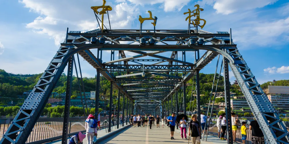 中山橋又稱黃河鐵橋,位於城關區,是蘭州標誌性的建築,也是遊客到蘭州遊玩一定要去的地方。鐵橋長兩百多米,寬約有七八米,保持了一百多年前修建時的黑色鐵架橋身,十分古樸。在百年來的修繕過程中,橋身上還架起了5座大鐵拱,十分美觀。鐵橋南側橋頭處,有金色的「中山橋」三個大字,還有一塊古老石碑,每天都有很多遊客到此合影,作為來過蘭州的留念。