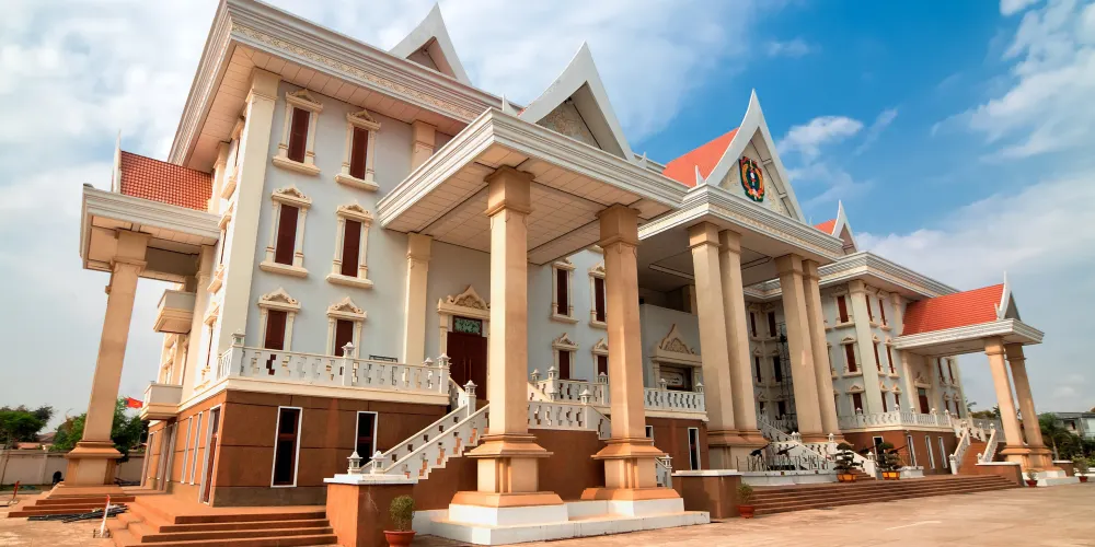 國家博物館外表看起來比較陳舊,是一棟兩層樓的建築。原來是法國殖民時期的政府大樓,後來改為國家博物館。 博物館裡面主要展示了寮國的地理文化及曆史進程,整體來說作為國家博物館,這裡的展示量及資訊量還是比較少的,不過還是可以讓你對寮國有更進一步的認識。 國家博物館對面是國家文化宮,高大雄偉的一棟建築,是由中國援建的,裡面一般舉行一些歌舞會等文化活動。