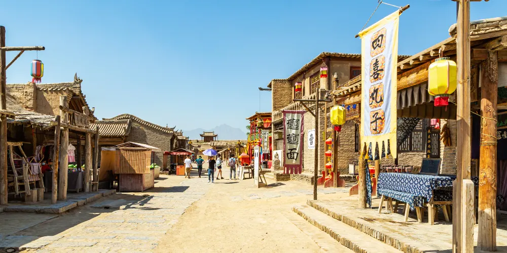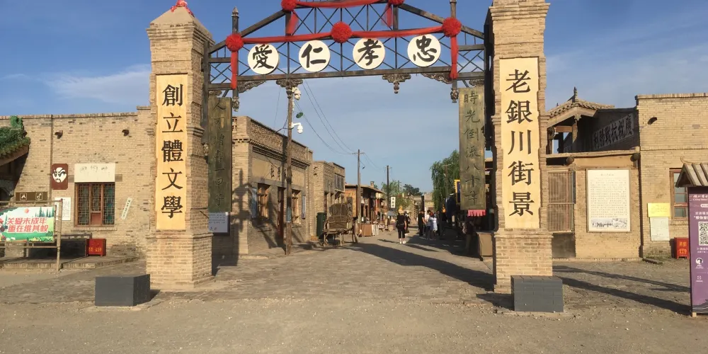 景區原址為明清時代的邊防城堡,在中國眾多的影視城中,西部影城以其古樸、原始、粗獷、荒涼、民間化為特色,是中國三大影視城之一。鎮北堡西部影視城由清城,明城,老銀川一條街三個部分組成。清城位於鎮北堡西部影城北端(景區正門口),建於清乾隆五年,是明城被地震摧毀後奉乾隆旨意夯築的另一個兵營,故名「清城」,清城大門就是清城的門戶。