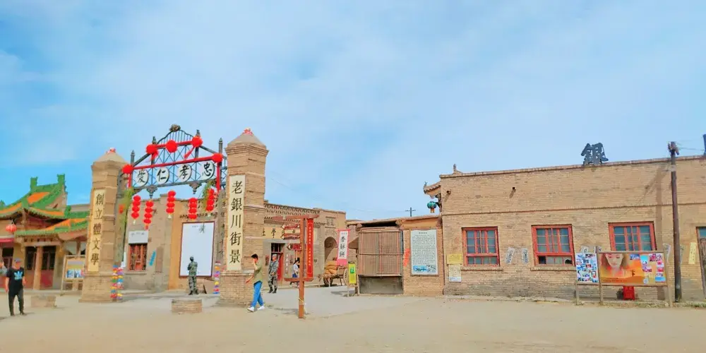 清城大門位於寧夏鎮北堡西部影城,是銀川市西夏區的標誌性建築,高30米,造型優美,以傳統文化元素為主題,彰顯著區域的歷史和文化底蘊。它經常作為電影佈景的城堡大門,張賢亮在小說《綠化樹》中稱它為「鎮南堡」,在清城大門拍攝取景的《朱元璋》、《飛天》、《大話西遊》等影視作品都大獲成功,所以中國影視界把這座城門稱為「幸運之門」。