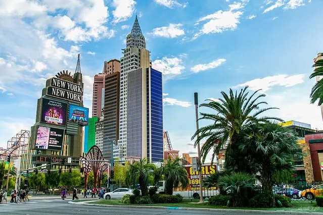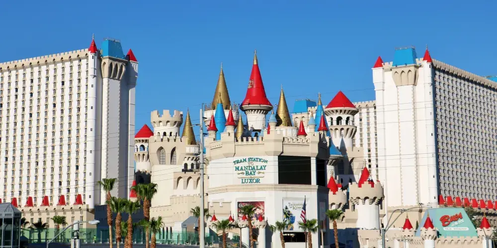 拉斯維加斯大道又稱長街,這裡有自助餐以及豐富的娛樂活動。長街上的酒店主要以地域為主題,通常將各地的地標建築造在酒店前方顯眼的位置。從南向北,可以在盧克索酒店的前方看到打上燈光的金字塔和獅身人面像。過了盧克索酒店向前便是石中劍酒店,英國城堡的外觀給人一種童話般的感覺。