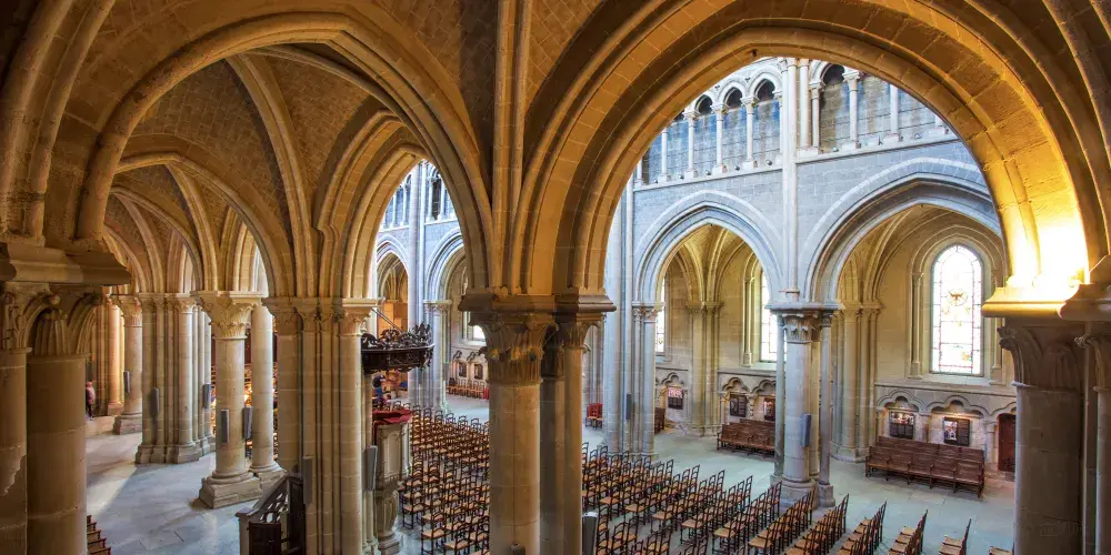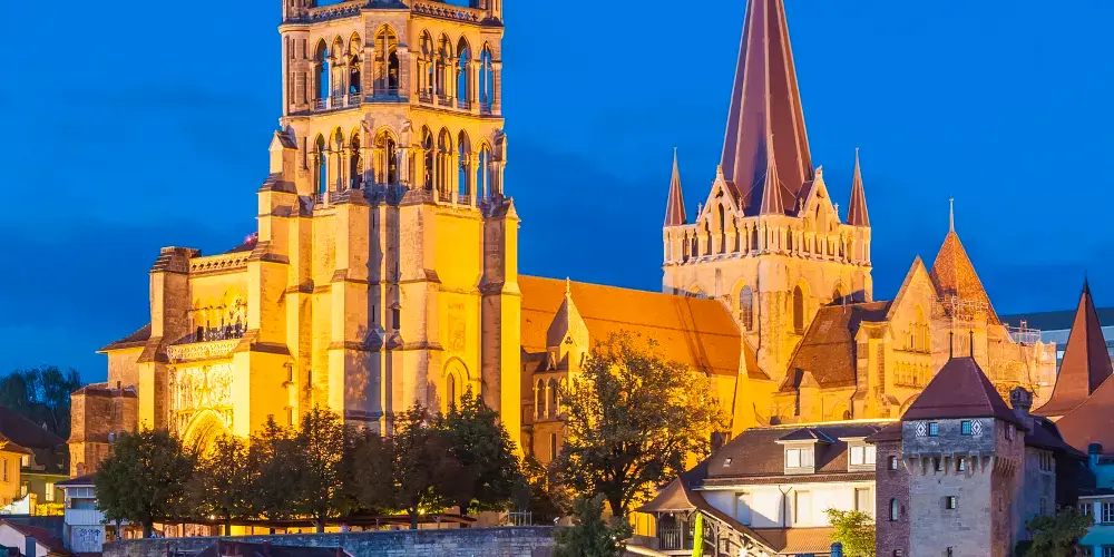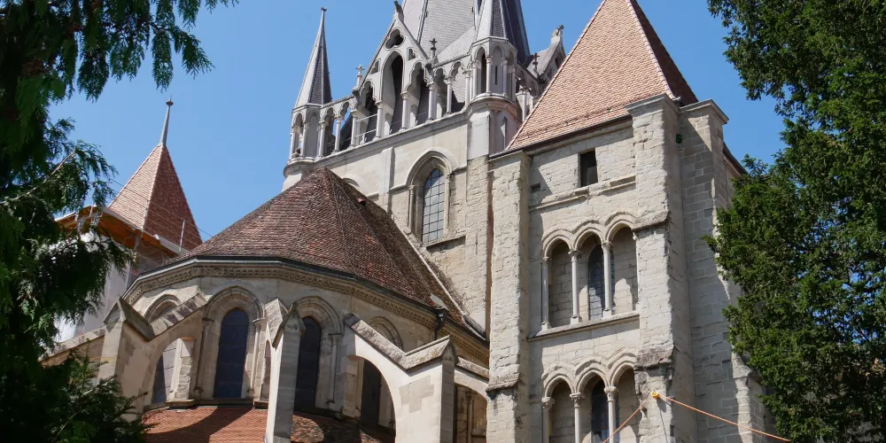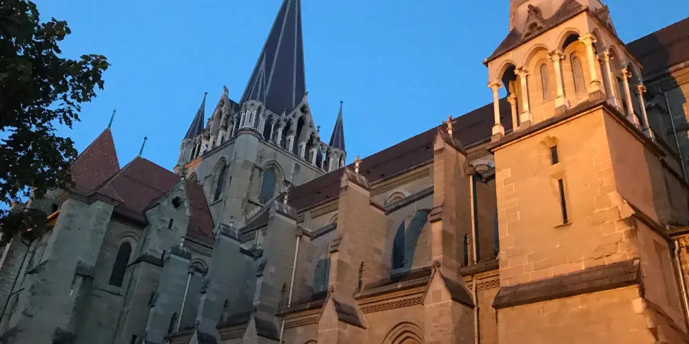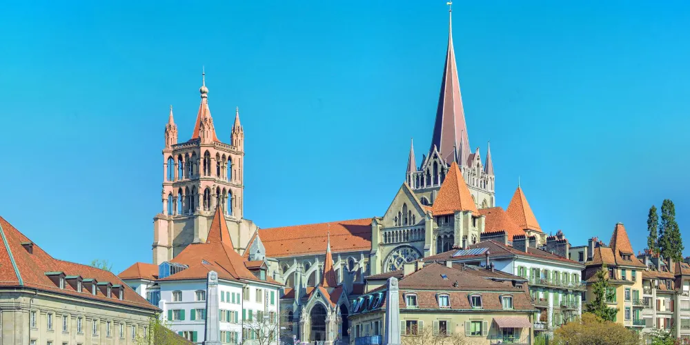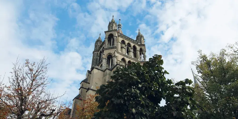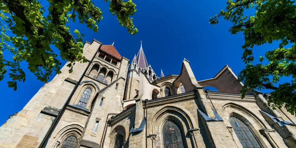 從洛桑老城區有很多路都可通往山丘上的聖母大教堂。教堂整體建築外觀至今保存完好,正門上有13世紀以聖經中的聖徒摩西·約翰等為主題的雕像,值得好好欣賞一番,雖然顏色已經斑駁,但仍能看出其細膩的雕刻工藝。