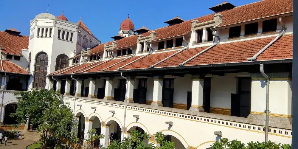 千重門位於印尼中爪哇省三寶壟市中心,是一座具有百年歷史的荷蘭殖民時期建築。其名稱在爪哇語中意為“一千扇門”,源於建築內數量眾多的門窗設計,儘管實際數量並未達到一千,但其密集排列的拱門和走廊形成了獨特的視覺效果。這棟建築起初建於1904年,曾是荷蘭東印度鐵路公司的總部,後來在日本佔領期間被用作軍事監獄。如今,作為鐵路博物館對公眾開放,已成為三寶壟的標誌性景點,展示了殖民時期的建築風格與印尼鐵路發展歷史。作為三寶壟知名的歷史遺跡之一,千重門不僅承載著殖民記憶,也展現了印尼近代化過程中的鐵路歷史,是探索印尼文化遺產的重要窗口。