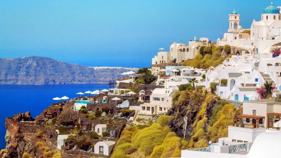 這座小村落坐落在高高的懸崖上,沿著懸崖步道從Fira-Firostefani-Imerovigli一路走上來的景色很美,是島上步行遊覽的精華路段,微微起伏的石頭小路延伸向海與天的盡頭,沿途小路兩邊還有商店、餐廳、咖啡館和酒吧,漫步於此,盡情享受悅目的風景和清新的地中海。
