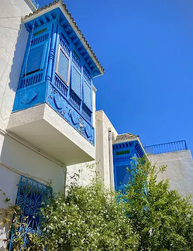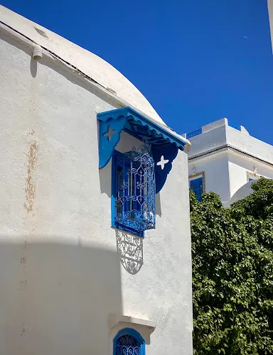西迪布賽義德沿著山勢蜿蜒而上,佈局簡單,一條鵝卵石鋪就的街道,兩邊是在陽光下閃閃發亮的白色房屋,也有些小巷從屋子內伸出去。房屋都只有二、三層樓高。而讓人感覺彷彿置身於童話的,是那白色牆上鑲嵌著的藍色的鐵窗和藍色的木門,蔓藤渦捲展現在鐵窗窗櫺之上,對稱而夢幻;門上的藍色銅釘則拼合出星星和月亮,還有弓箭、花卉等圖案,華麗而精美。
