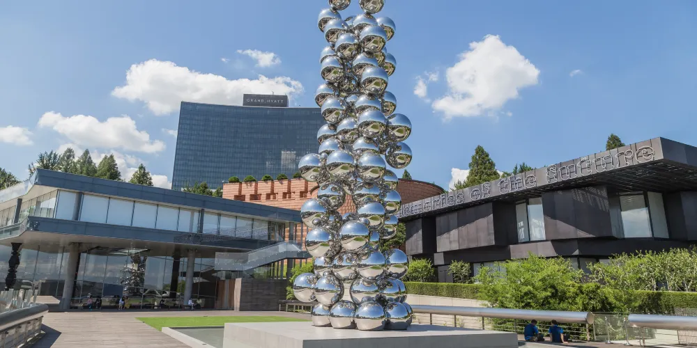 三星美術館Leeum位於俯瞰漢江的南山上,過去、現在和未來的文化藝術在此交融相匯。三星美術館Leeum由瑞士建築師依據得自韓國傳統陶瓷的靈感設計的傳統美術館、法國建築師運用新材料設計的現代常設展館、荷蘭建築師設計的三星兒童教育文化中心三部分構成。