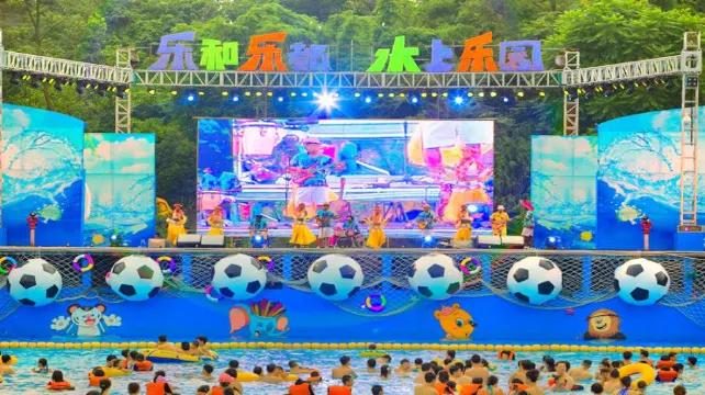 水樂園以消夏戲水為主題,總佔地3萬平方米,設有碧水造浪池、叢林疾馳滑道、精靈戲水池、塔希提水寨、急速滑道、螺旋滑道、旋風喇叭、音樂戲水噴泉等勁爽刺激的設施,讓你清涼一夏。(可單獨購票)