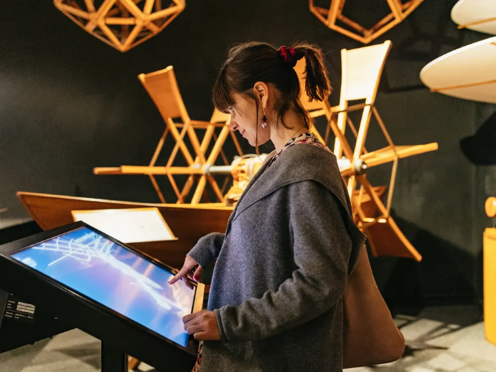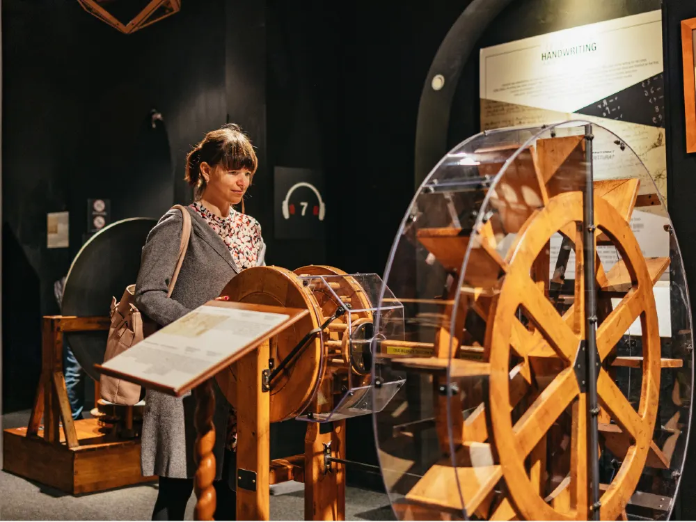 博物館擁有眾多基於達文西設計的全尺寸發明複製品,如飛行器、戰爭機器、潛水艇等。遊客可以直接操作這些互動展品,轉動曲柄、探索機械原理,親身體驗達文西的創新精神。