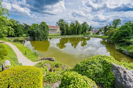 則評價Esterhazy宮建於1663年,非常的引人注目。建築風格整體為巴洛克風格,給人一種學術派的氣息,建築有四個角塔,宮內共有200個房間,其中的海頓廳屬最有名最值得參觀的了,房間內完美地保存著當年的細節,地板和柱子都採用木質。海頓的許多作品都在這裡演出過,房間還裝飾著許多精美的壁畫,是一種感官的享受。