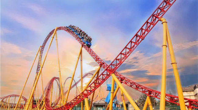 2016年12月,景區榮升國家AAAA級景區。有著亞洲超長過山車美譽的「閃電」過山車,由德國MACK公司量身定制,時速可達120公里、軌道長達1.3公里,堪稱鎮園之寶。雷神之錘、快樂飛俠、翻江倒海等經典項目讓您在極速與俯仰間獲得離心失重、驚心動魄的奇妙感受,更能在熊貓農場、旋轉木馬、童夢王國等與孩子一起感受親子互動玩樂的夢幻童真和幸福快樂。